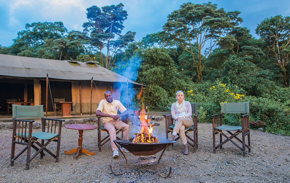 Bukima Tented Camp positions itself as one of the most strategically located places to stay in Virunga National Park, offering direct access to the famous Kabirizi gorilla family tracking experience. The camp features spacious canvas tents with comfortable beds, solar-powered lighting, and spectacular mountain views that showcase the dramatic volcanic landscape. Each tent provides adequate privacy and storage while maintaining the authentic safari atmosphere that makes gorilla trekking feel like a true wilderness adventure.