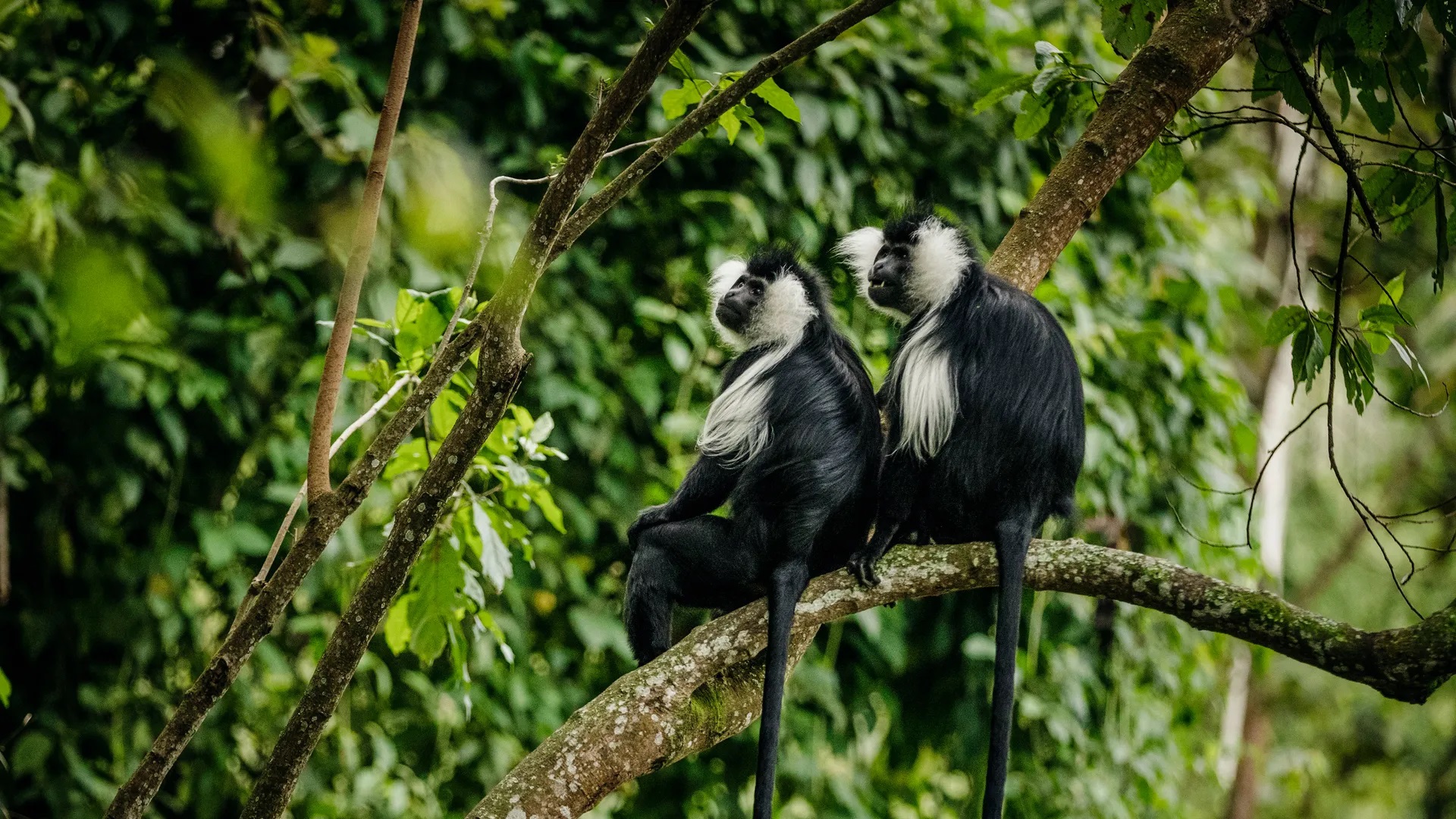 Photography opportunities with colobus monkeys in Nyungwe Forest National Park are exceptional, particularly during golden hour lighting. Their striking black and white coloration contrasts beautifully against the green forest backdrop. Unlike chimpanzees, colobus monkeys in Nyungwe Forest National Park are less sensitive to human presence, allowing for more extended observation periods and better photographic opportunities for visitors.