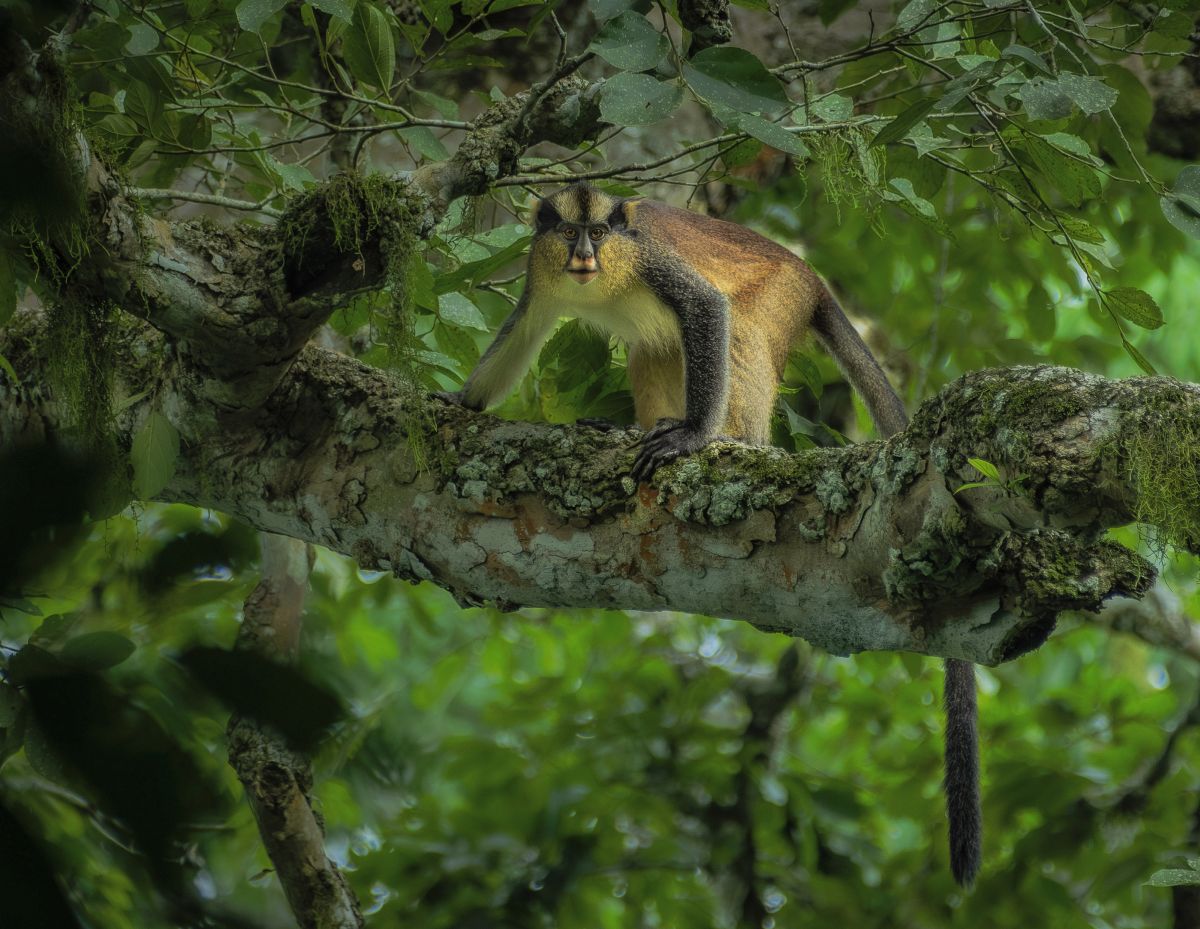 Moustached monkeys bring distinctive facial features to what animals are in the Odzala Kokoua, with white mustache-like markings that contrast sharply with their dark faces and make identification straightforward even for novice primate watchers. These active primates prefer riverine forests and gallery woodlands where they feed on fruits, seeds, and young leaves while maintaining territories through scent marking and vocal displays. Their social groups typically include 12-25 individuals with strong female bonds that persist throughout their lives, while males establish dominance hierarchies through displays and occasional physical confrontations. The excitement of moustached monkey encounters comes from their curious nature and tendency to approach human observers more closely than other forest primates. What animals are in the Odzala Kokoua demonstrate habitat specialization through moustached monkeys, whose preference for forest edges and secondary growth areas makes them more easily observable than strictly canopy-dwelling species.